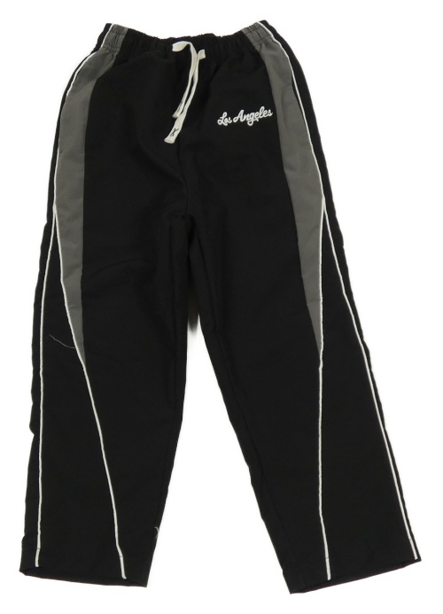 Černo-tmavošedé šusťákové kalhoty s nápisem