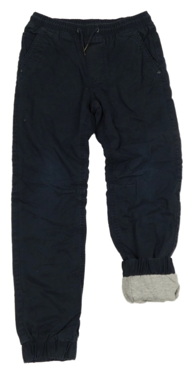 Tmavomodré plátěné podšité cuff kalhoty