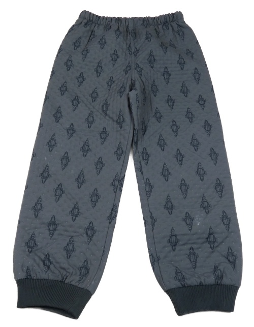 Tmavomodré šusťákové lehce zateplené kalhoty s raketami