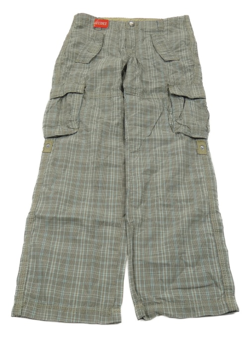Nové - Béžovo-tyrkysové kostkované plátěné cargo rolovací kalhoty Yigga