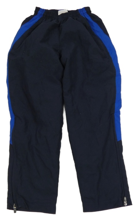 Tmavomodro-modré šusťákové podšité kalhoty s pruhy