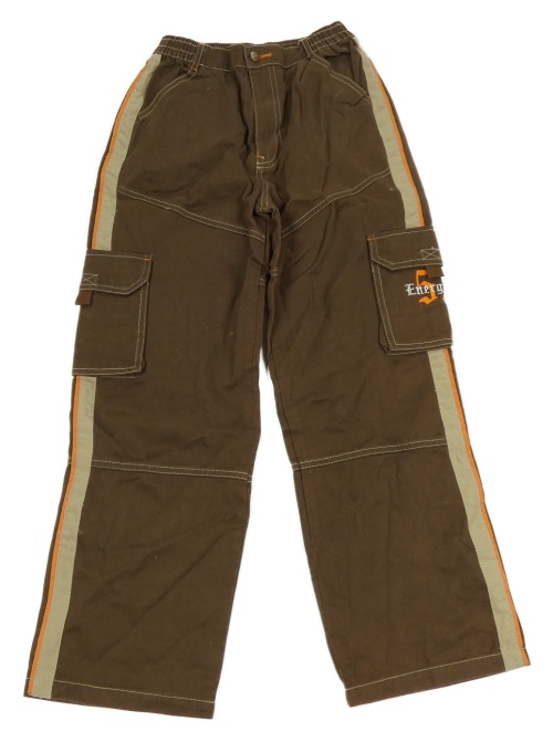 Hnědé plátěné kalhoty s béžovým pruhem a kapsami