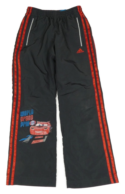 Tmavošedé šusťákové kalhoty s červenými pruhy - Cars Adidas