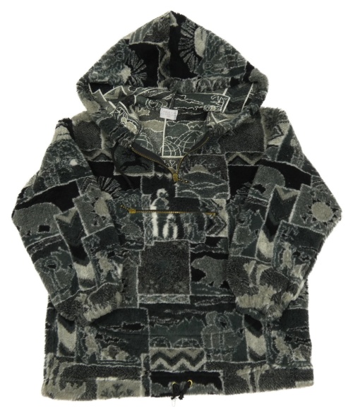 Šedo-černá vzorovaná chlupatá mikina s kapucí