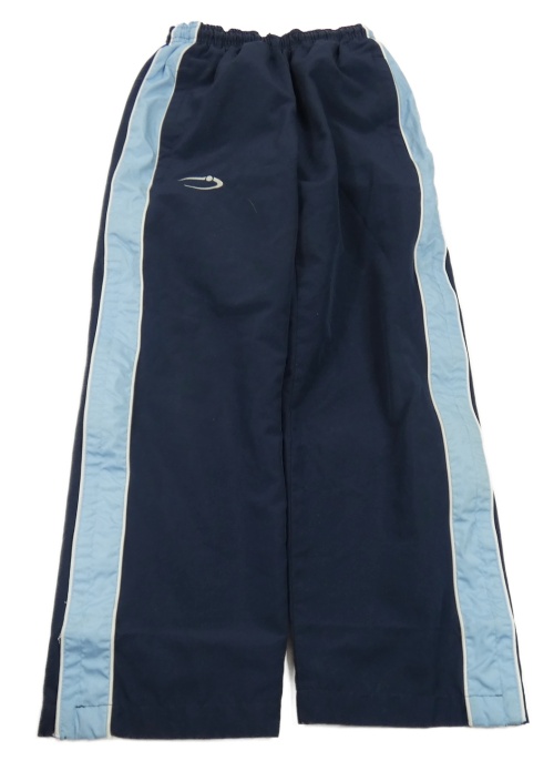 Tmavo-světlemodré šusťákové kalhoty s výšivkou