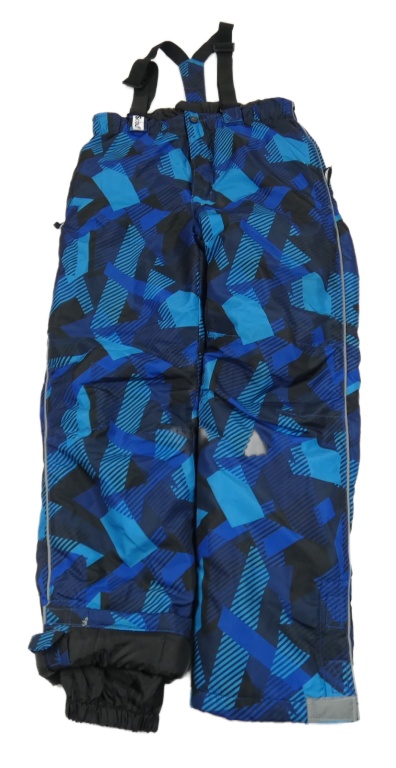 • Černo-modro-safírové vzorované šusťákové zimní oteplovačky s odepínacími kšandami Scout