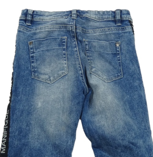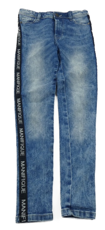 Tmavomodré skinny rifle s pruhy a nápisy