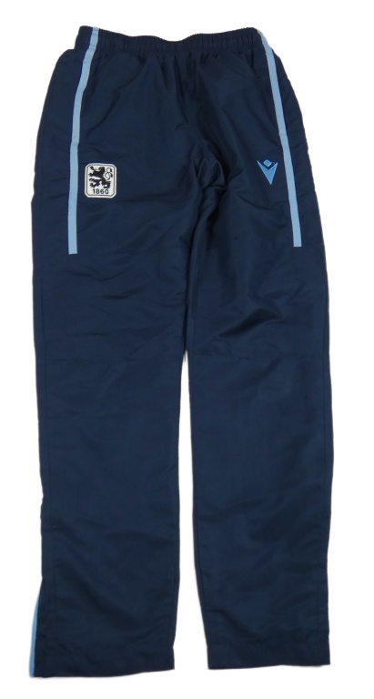 Tmavomodré šusťákové podšité kalhoty s nášivkou Macron