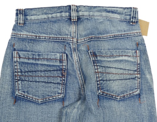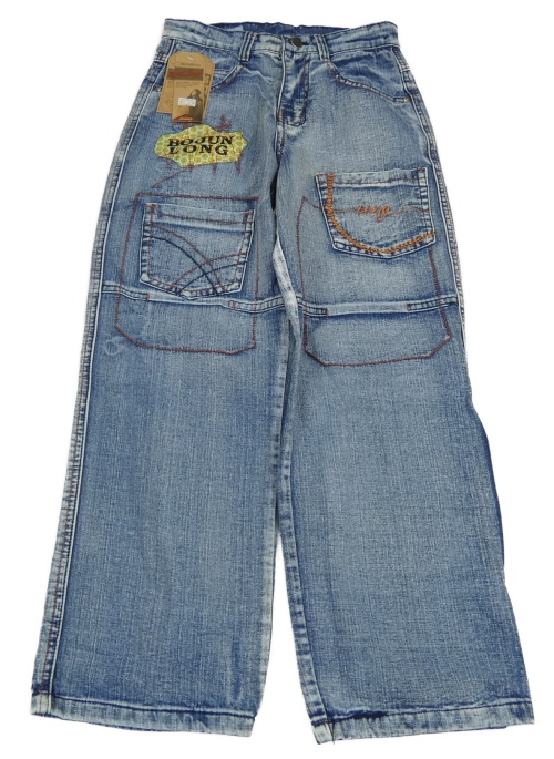 Nové - tmavomodro-bílé melírované rifle s kapsami a potiskem