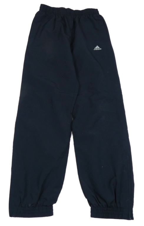 Tmavomodré šusťákové podšité funkční kalhoty s logem Adidas