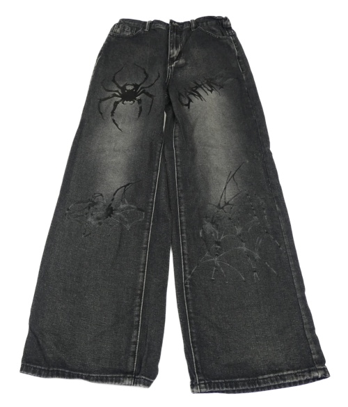 Černé široké rifle s pavouky SHEIN