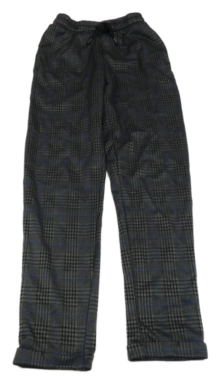 Tmavošedo-černo-modré kostkované teplákové kalhoty