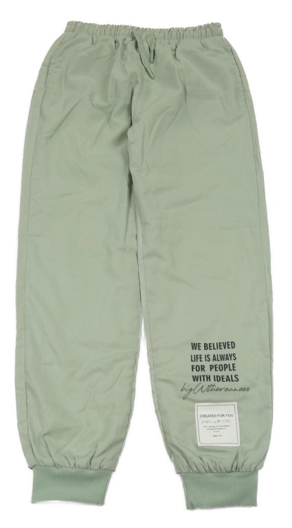 Světlezelené šusťákové zateplené cuff kalhoty s nápisy