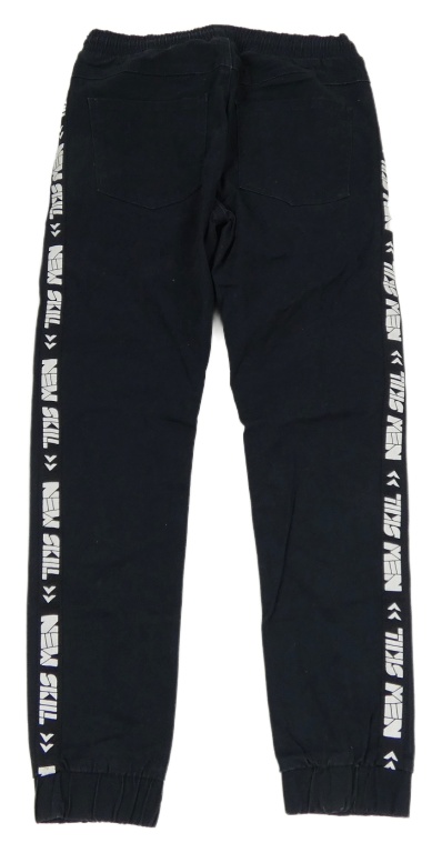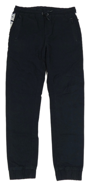 Tmavomodré plátěné cuff kalhoty s pruhem s nápisy Destination
