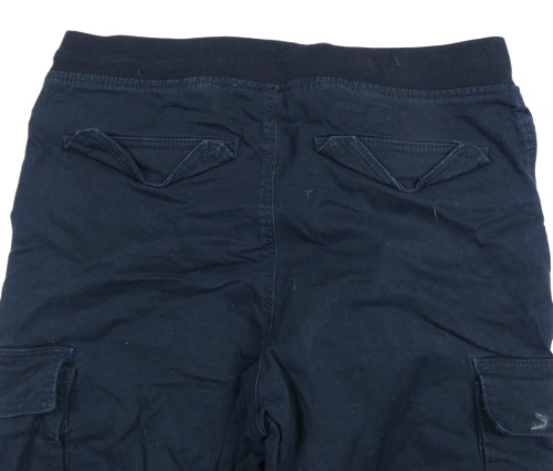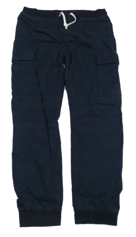 Tmavomodré plátěné cuff cargo kalhoty s úpletovým pasem H&M