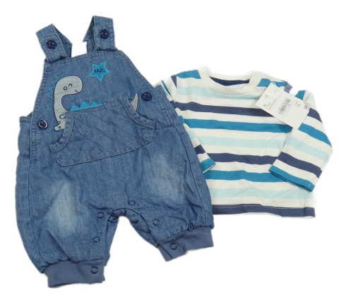 Nové - 2set - Modré laclové rifle s dinem + pruhované triko C&A