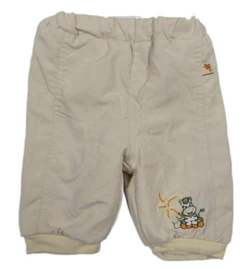 Béžové šusťákové zateplené kalhoty s výšivkou