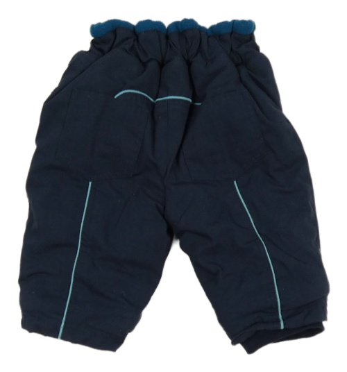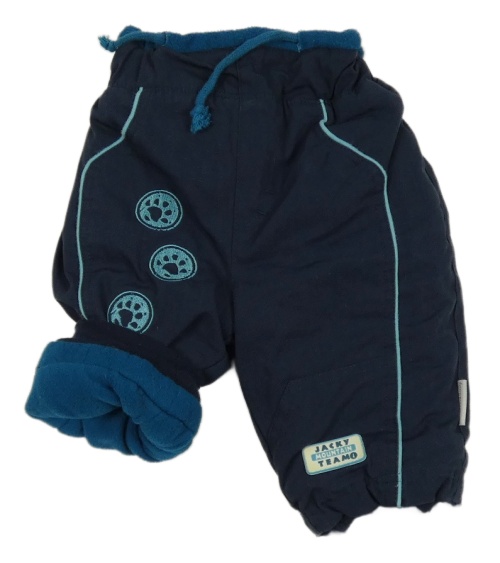 Tmavomodré šusťákové zateplené kalhoty s tlapkami