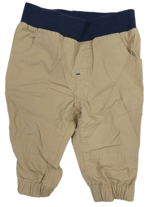 Béžové cuff plátěné kalhoty s tmavomodrým úpletovým pasem Topomini
