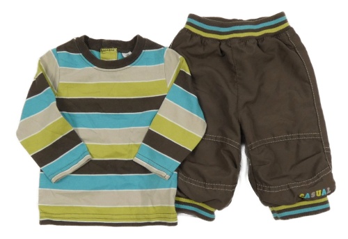 2set - Hnědo-modré pruhované triko+ hnědé podšité kalhoty