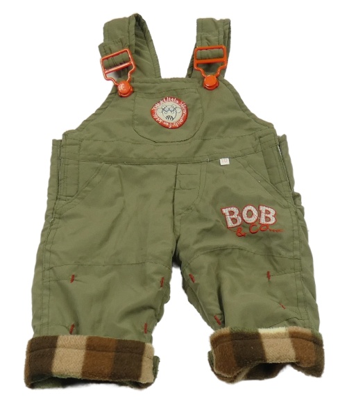 Khaki šusťákové laclové kalhoty s výšivkou