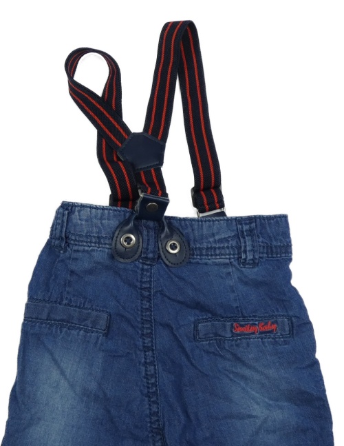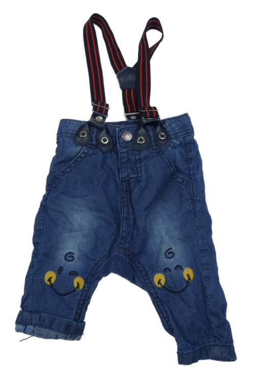 Tmavomodré lehké rifle se smajlíky a kšandami