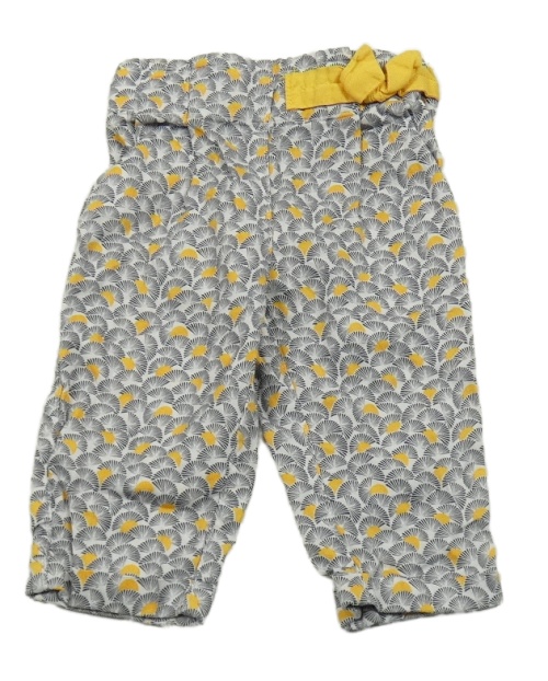 Bílo-tmavomodro-okrové vzorované volné kalhoty s mašlí Obaibi