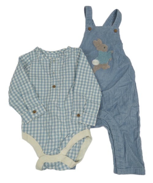 Nové- Modré laclové manšestráky s králíčkem+ kostkované body M&S