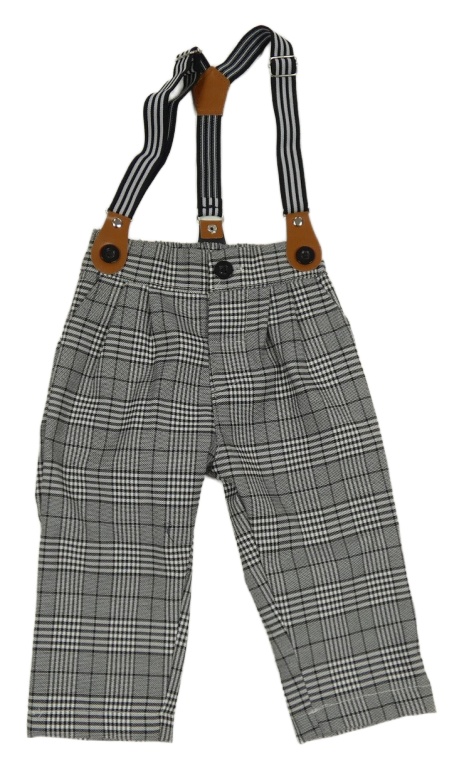 Černo-bílé kostkované kalhoty s kšandami Shein