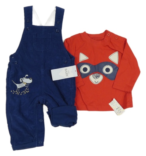 • Nové - 2Set - Tmavomodré manšestrové laclové podšité kalhoty s pejskem a kapsou + červené triko F&F