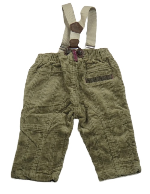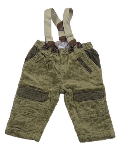 Hnědokhaki kostkované chino manšestrové podšité kalhoty s kšandami chicco