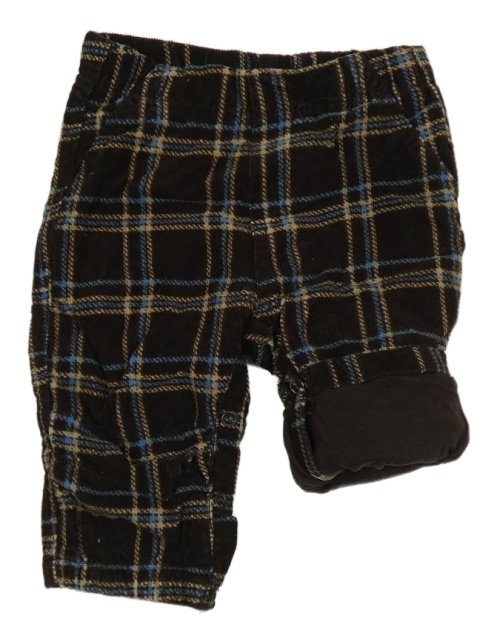 Kávovo-barevné kostkované podšité manšestrové kalhoty
