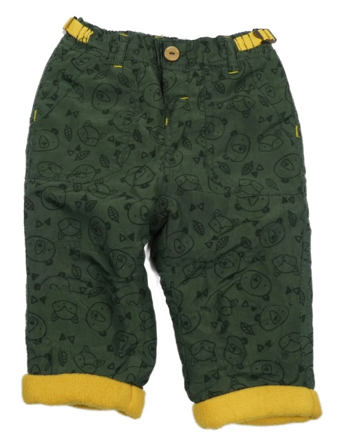 Khaki chino šusťákové podšité kalhoty s medvídky a liškami Ergee