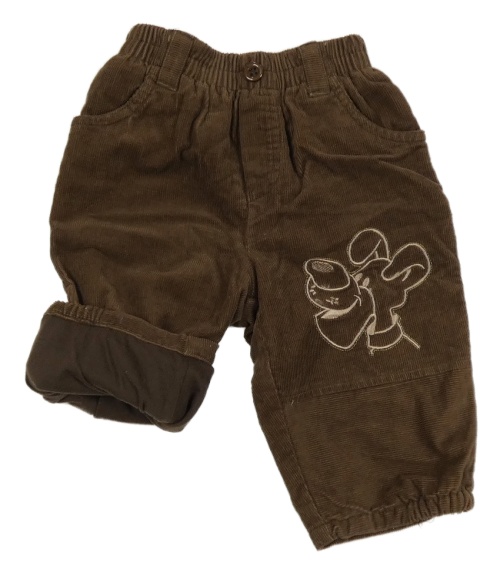 Hnědé manšestrové zateplené kalhoty s pejskem