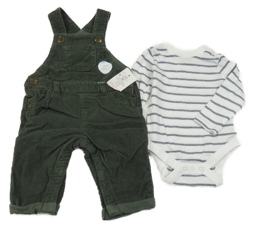 Nové - 2set- tmavozelené podšité laclové manšestráky+ pruhované body F&F