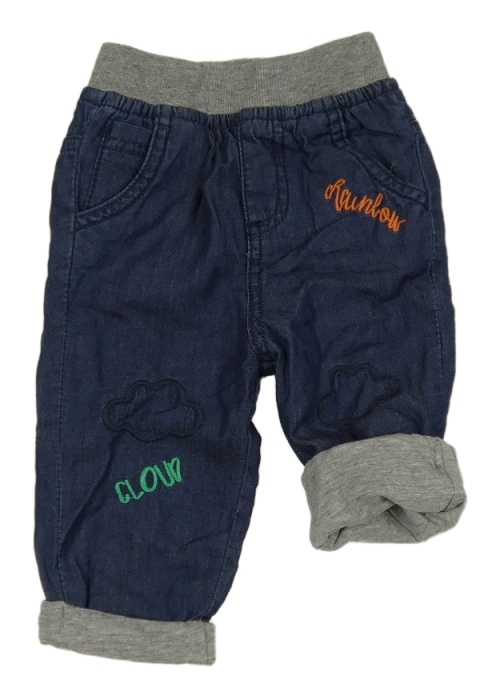 Tmavomodré lehké podšité rifle s nápisy a obláčky a šedým úpletovým pasem ORCHESTRA
