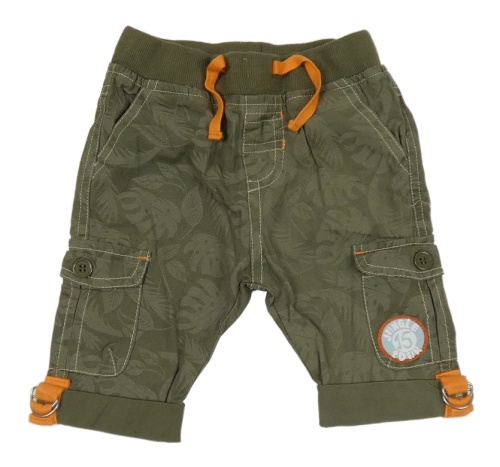 Khaki cargo plátěné rolovací kalhoty s listy a nášivkou a úpletovým pasem Smile
