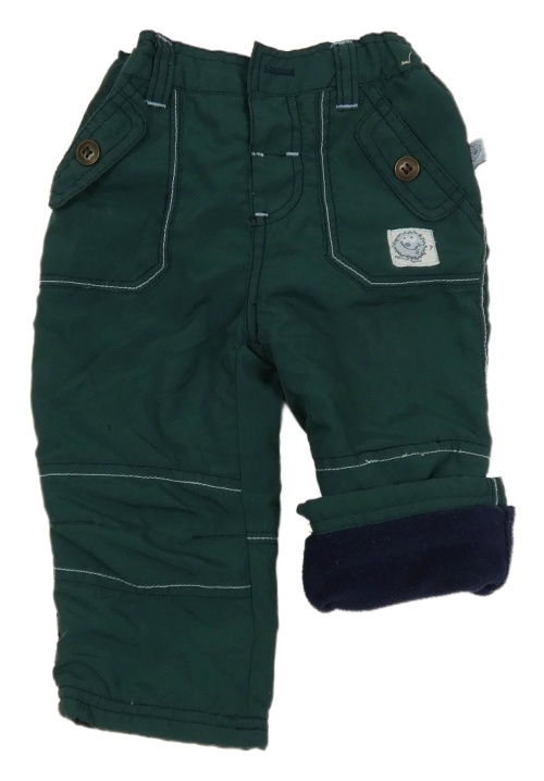 Tmavozelené šusťákové podšité kalhoty s ježečkem