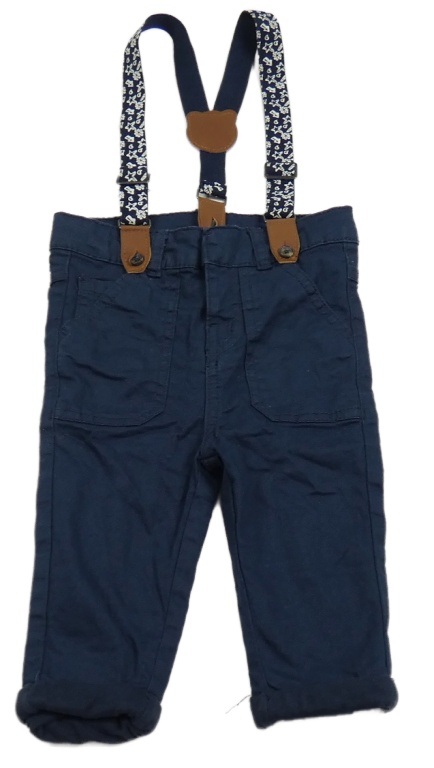 Tmavomodré chino plátěné podšité kalhoty s kšandami ORCHESTRA