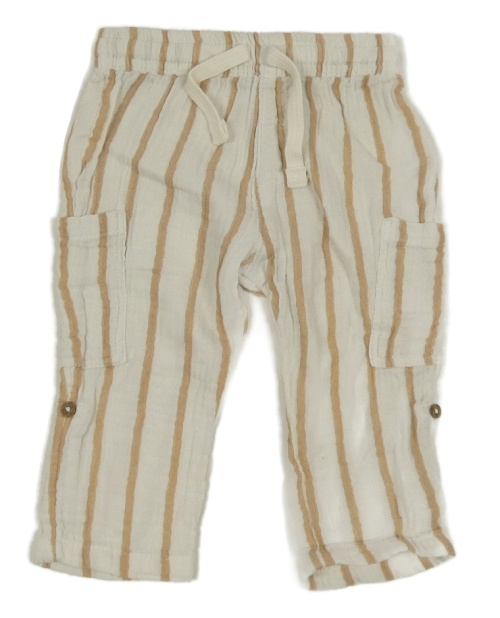 Smetanovo-béžové pruhované mušelínové roll-up kalhoty s kapsami F&F