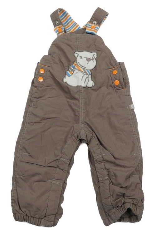 Hnědé šusťákové laclové zateplené kalhoty s medvídkem Smile