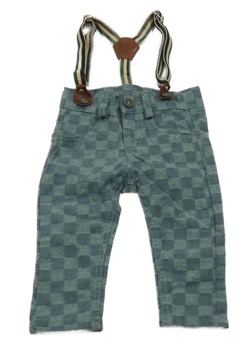 Zeleno-modrošedé kostkované kalhoty s kšandami