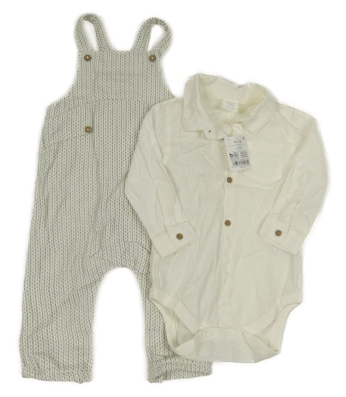 Nové - 2set - Smetanové lněné body + bílo-černé vzorované lacláče Next