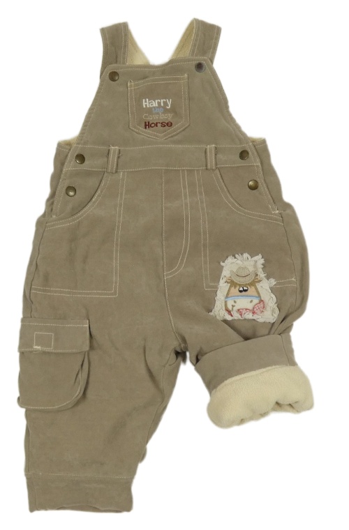 Khaki zateplené laclové kalhoty s koněm a nápisy