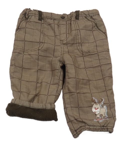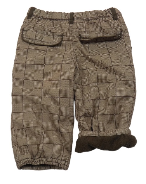 Hnědé kostkované šusťákové zateplené kalhoty se sobem
