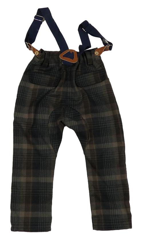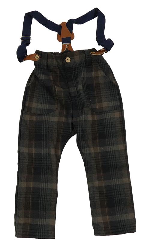 Hnědo-khaki-černé kostkované kalhoty s kšandami