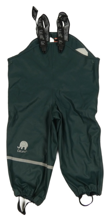 Tmavozelené voděodolné laclové kalhoty se slonem