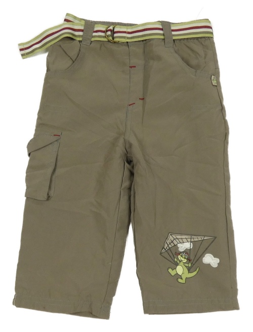 Béžové šusťákové podšité kalhoty s dinem a páskem