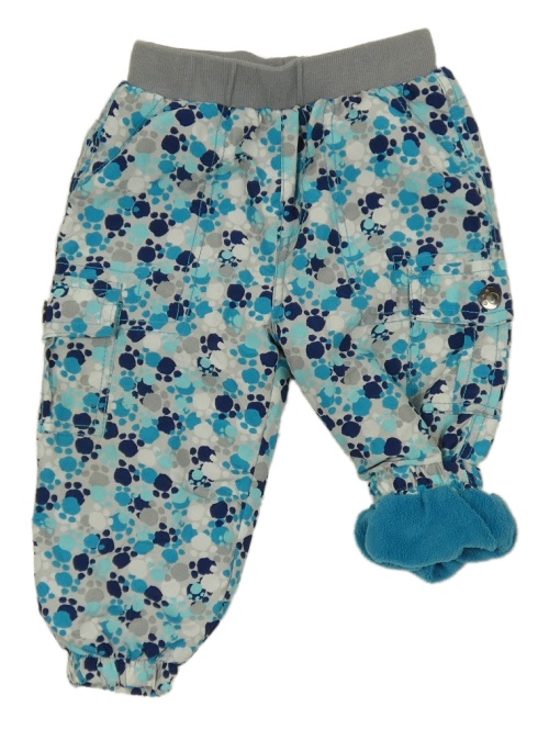Šedo-bílo-modré zateplené šusťákové kalhoty s tlapkami Ergee