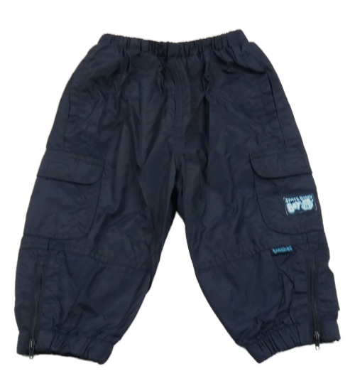Tmavomodré šusťákové cargo kalhoty s nápisem